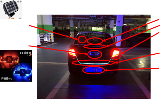 | 紅色 | ブレーキランプ | 紅色 | 灰色 | 青色 | 紅色 | ブレーキランプ | 紅色 | ||||||||||||||||||||||||||||||||||||||