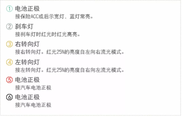 | 白色 | 左方向指示器 | 白色 | 黄色 | 白色 | 右方向指示器 | 白色 | 黄色 | ||||||||||||||||||||||||||||||||||||||